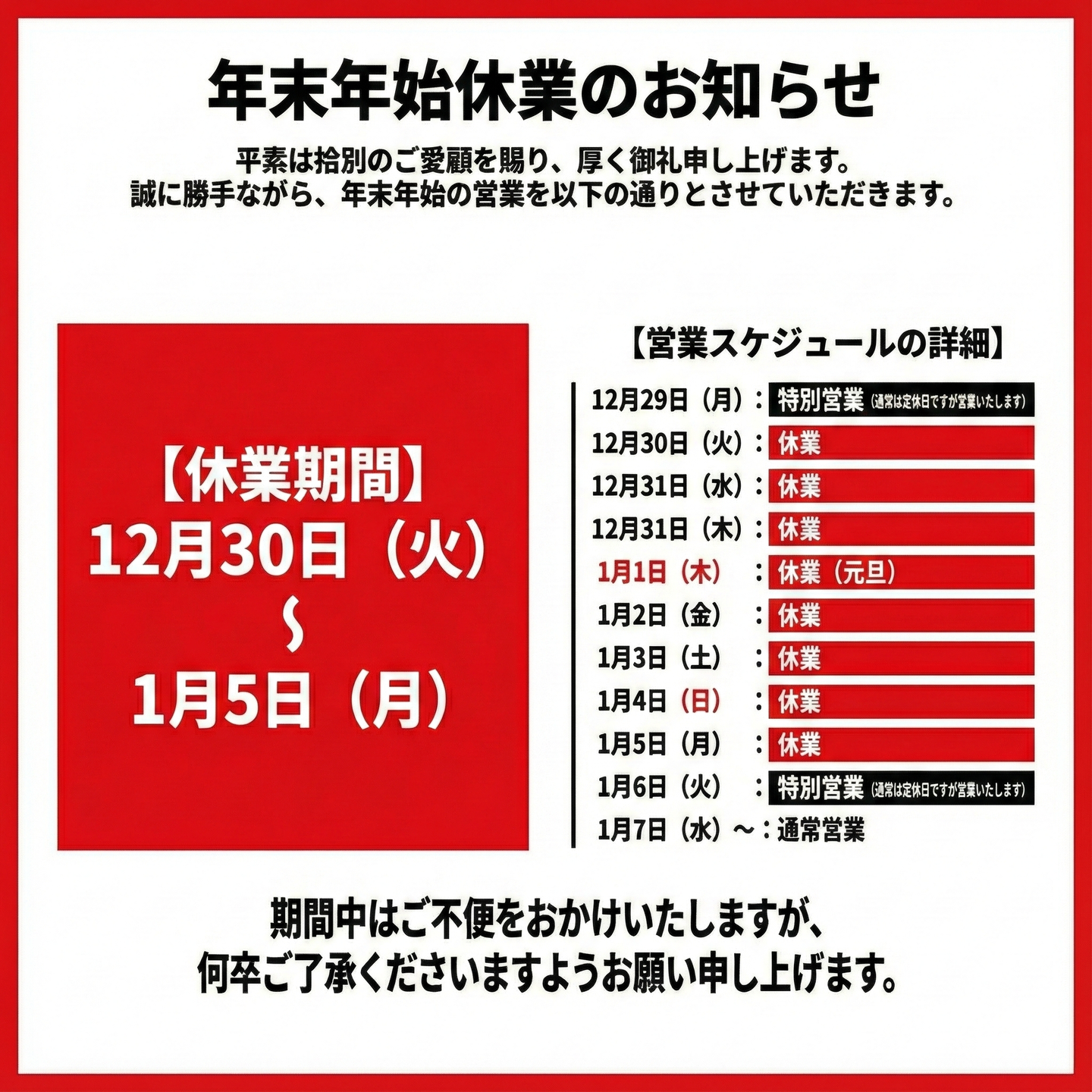 日曜・月曜・火曜・年末年始・GW・お盆 |